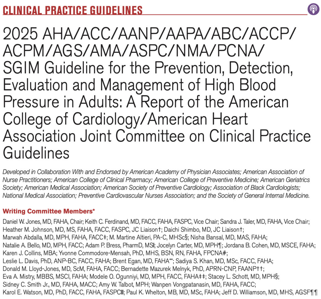 米国心臓協会(AHA)および米国心臓病学会(ACC)を含む13の学術団体は、2017年以来8年ぶりの改訂となる「成人の高血圧の予防・検出・評価・管理のためのガイドライン2025」を公表しました。本ガイドラインは、最新のエビデンスに基づき、高血圧管理の新たなスタンダードを提示しています。