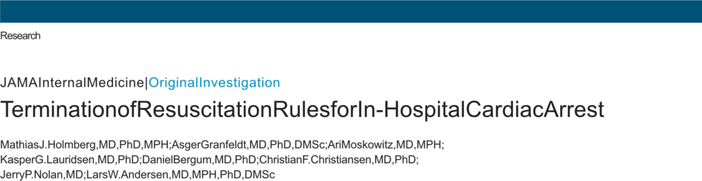 引用文献: Holmberg MJ, et al. Termination of Resuscitation Rules for In-Hospital Cardiac Arrest. JAMA Intern Med. 2025;185(4):391-397.